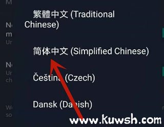 5、最后在打开的下拉选项中,点击简体中文,然后就设置好中文了。