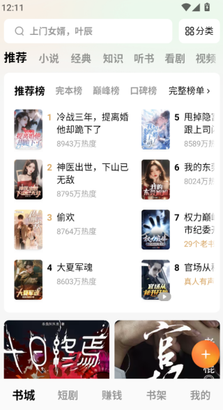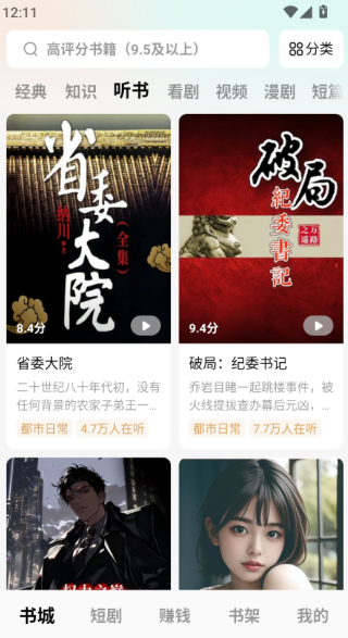 2、进入到听书功能进入,可以看到优质的小说推荐,方便用户使用。