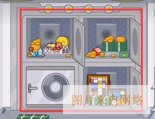 来到银行二楼,打开保险柜,根据图形找到钻石,红心,星星以及贝壳并依次放入,保险柜就会打开,里边有很多宝物。