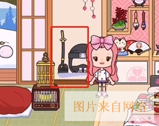 来到温泉小屋,把挨着招财猫的黄色壁纸撕开,里面藏了套忍者服装。